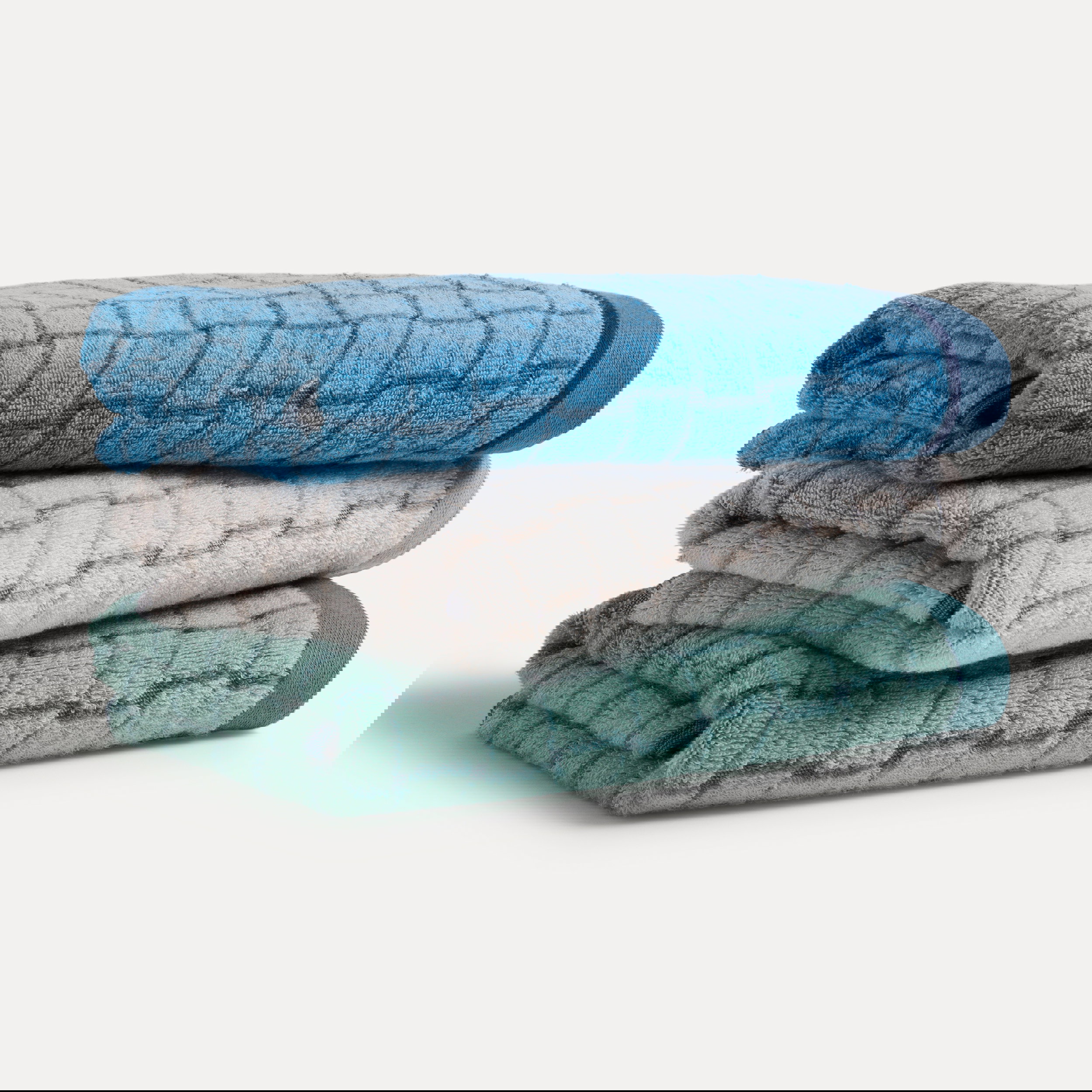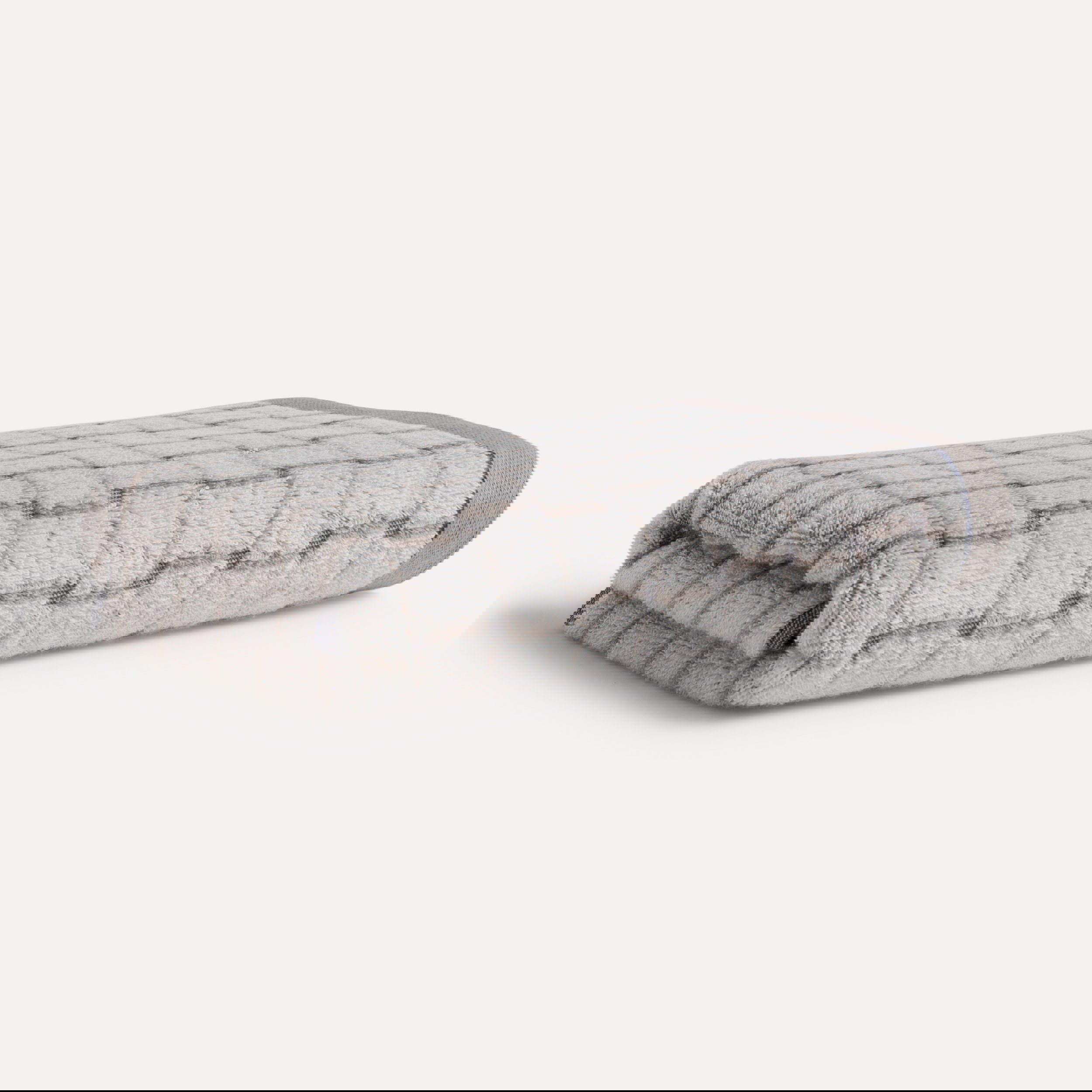The fine grid structure creates a modern pattern in which the double-face effect really comes into its own. The front and back show the design in an inverted play of colour. Made from 100% cotton, the towel is absorbent and pleasantly soft.