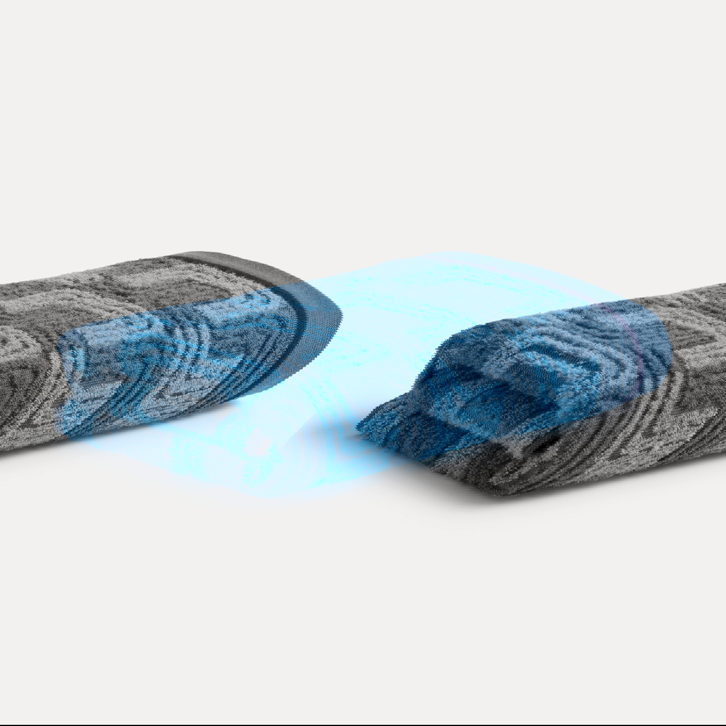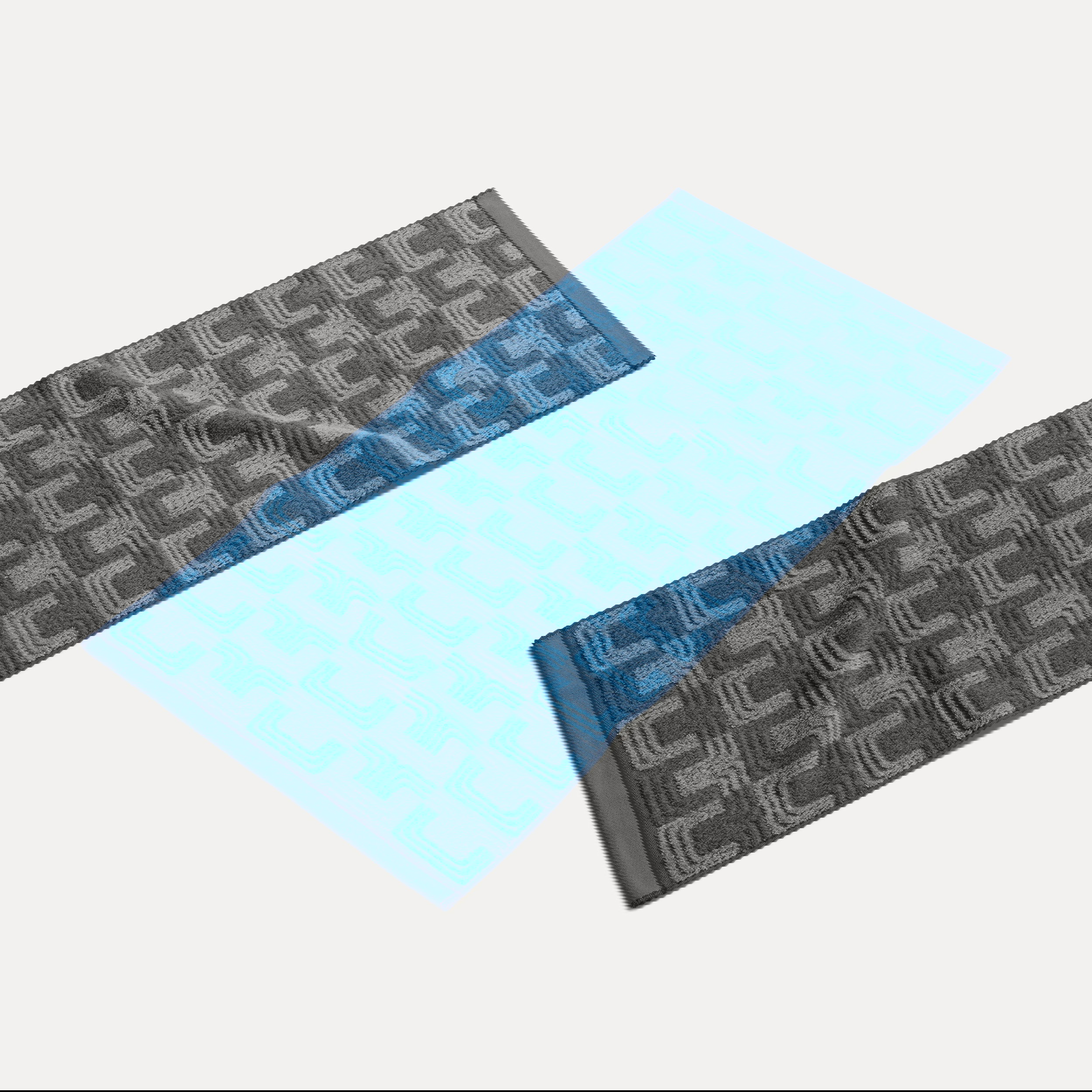 Soft, soothing colours are shaping many interior concepts right now – they create balance and bring harmonious calm into the room. Our first edition, MÖVE GEOMETRIC SHAPES, enhances this effect with graphic, intricately woven jacquard patterns featuring a subtle high-low structure and refined relief look. A special highlight is the double-face effect: the front and back show the pattern in reversed colouration, adding an extra visual twist. Thoughtful details – such as the contrast hanging loop and a unified border with a distinctive blue accent – complete the design.